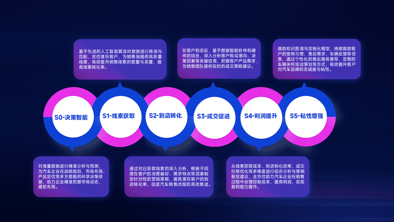 通过拓宽潜在客户来源、、优化线索分配并提高到店转化率,,以增强销售效率。。。同时,,,利用线索数据不断优化分析模型,,,,有效提升转化率,,,扩大营销影响力。。